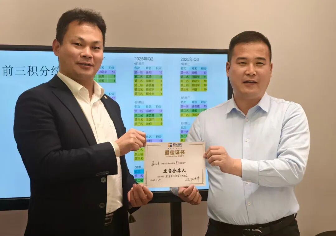 评选颁奖环节,现场观众通过计票评选,选出了第87期精诚讲堂最佳主旨分享人蓝清律师,最佳党建分享人程全华律师,最佳角色康乐律师,最佳即兴演讲人王冬梅律师,程全华律师及蓝清律师为获奖者颁发奖状。