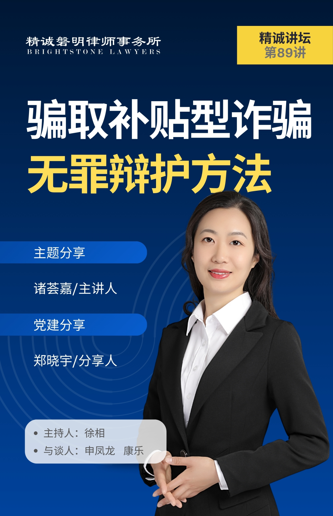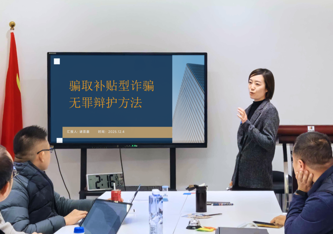 2025年12月4日,上海精诚磐明律师事务所「精诚讲堂」第89期,诸荟嘉律师作《骗取补贴型诈骗无罪辩护方法》专题分享,徐相老师主持,申凤龙律师、康乐律师为与谈人。