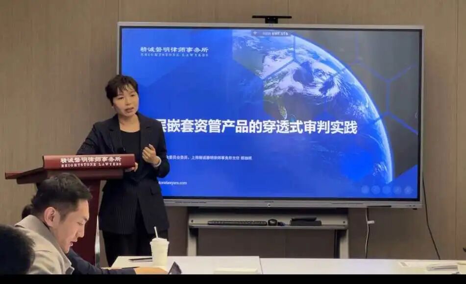 2025年12月25日,上海精诚磐明律师事务所「精诚讲堂」第92期,顾珈妮律师作《嵌套资管产品的穿透式审判实务》专题分享,沈玲律师主持,徐相老师作党建分享,汪国华律师、郑晓宇律师为与谈人。